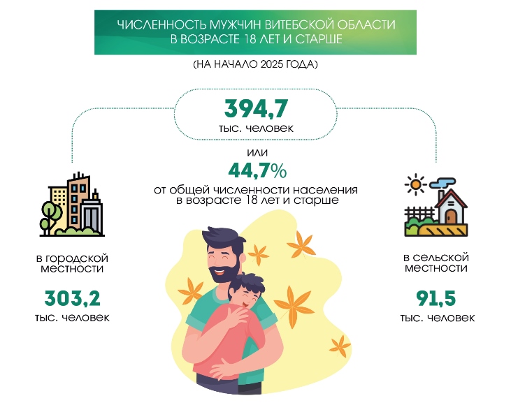 21 октября — День отца. Почти 395 тысяч мужчин в возрасте 18 лет и старше проживали в Витебской области на начало года