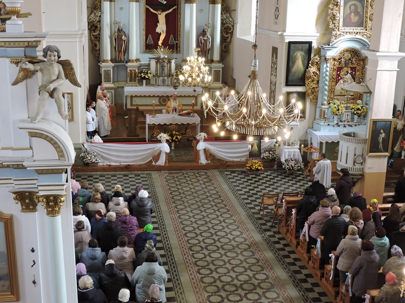 Вялікае ажыўленне панавала сонечным суботнім днём каля велічнага храма ў аграгарадку: пад’язджалі аўтамабілі, спяшаліся ў касцёл па-святочнаму апранутыя, з кветкамі ў руках прыхаджане. Хваляваліся, каб вецер, што раз-пораз узмацняўся, не парушыў спрэс выкладзенай кветкамі дарожкі да цэнтральнага ўваходу ў касцёл, – чакалі прыезду біскупа Віцебскай дыяцэзіі Алега Буткевіча.