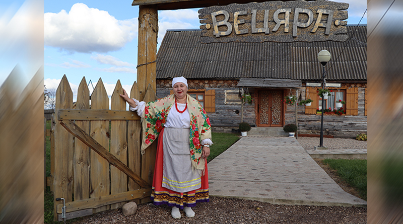 Вольга Квачонак выдатна спраўляецца з роллю гаспадыні этнасядзібы. Сама мясцовая, нарадзілася і жыве тут, у Вецяры. Таму ведае вясковы ўклад жыцця, як кажуць, знутры.