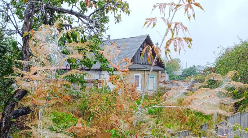 Потомство американской белой бабочки образует паутинные коконы, которые разрастаются до полутора метров, оплетая даже целые деревья. Листва внутри гнезд полностью съедается вредителем.