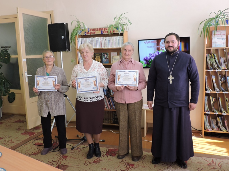 Почетные гости на празднике – заместитель начальника управления по труду, занятости и социальной защите райисполкома Татьяна Модель, государственный нотариус Докшицкого района Антонина Нехай, клирик прихода храма Покрова Пресвятой Богородицы Павел Иосько, директор центра банковских услуг ОАО «Белагропромбанк» Елена Шугальская и начальник отдела разовых продаж этой организации Ольга Гильнич.