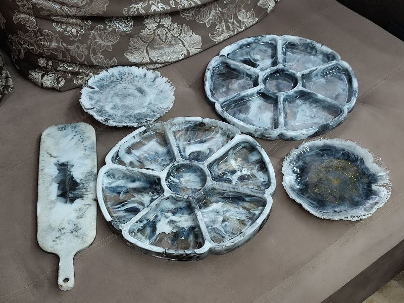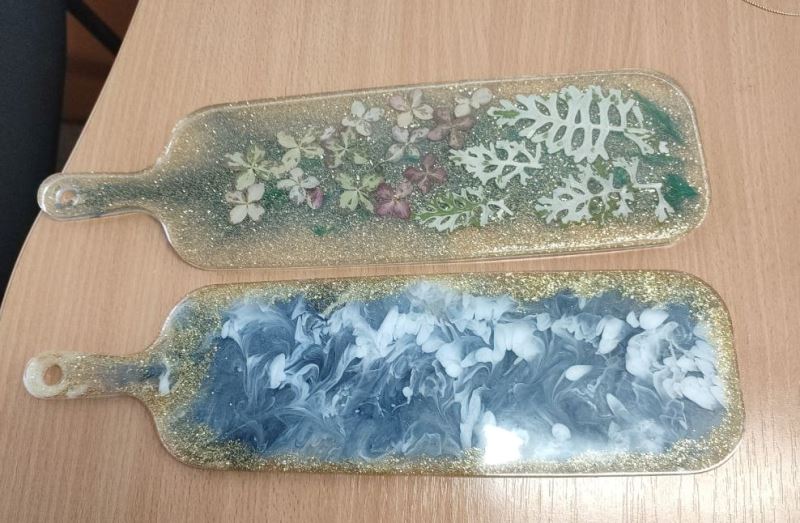 Зацікавілася наша гераіня і вырабамі з гіпсу. Рознага роду статуэткі – гэта, канешне, цікава і прыгожа, а вось дэкаратыўная плітка для сцен – яшчэ і карысна. Атрымалася не горш, а, можа, нават і лепш за фабрычную. А тут убачыла ў Інтэрнэце магічнае дзеянне – работу з эпаксіднай смалой. І панеслася! Падсвечнікі і ёлачныя цацкі (іх хапае зараз, каб упрыгожыць навагоднюю ёлку ад столі да падлогі, у запасе цэлая каробка, і безліч падаравана), пано, талеркі, падстаўкі, мянажніцы… На драбнейшым, кажа, набіла руку – у планах брацца за больш аб’ёмныя работы, напрыклад, стальніцы. Ды і яшчэ адно новае захапленне з’явілася: Святлана ўзялася за сваю першую сумачку з дэкаратыўнага шнура. Ужо па тым, што зроблена, бачна: будзе прыгожая і адметная рэч.