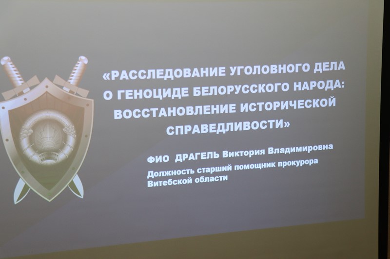 В производстве Генеральной прокуратуры находится уголовное дело по фактам геноцида белорусского народа, совершенного нацистскими преступниками, их соучастниками, преступными формированиями в ходе Великой Отечественной войны и послевоенный период. О ходе расследования рассказала старший помощник прокурора Витебской области Виктория Драгель во время выступления перед учениками СШ № 2 г. Докшицы имени У.Ф. Кришталевич.