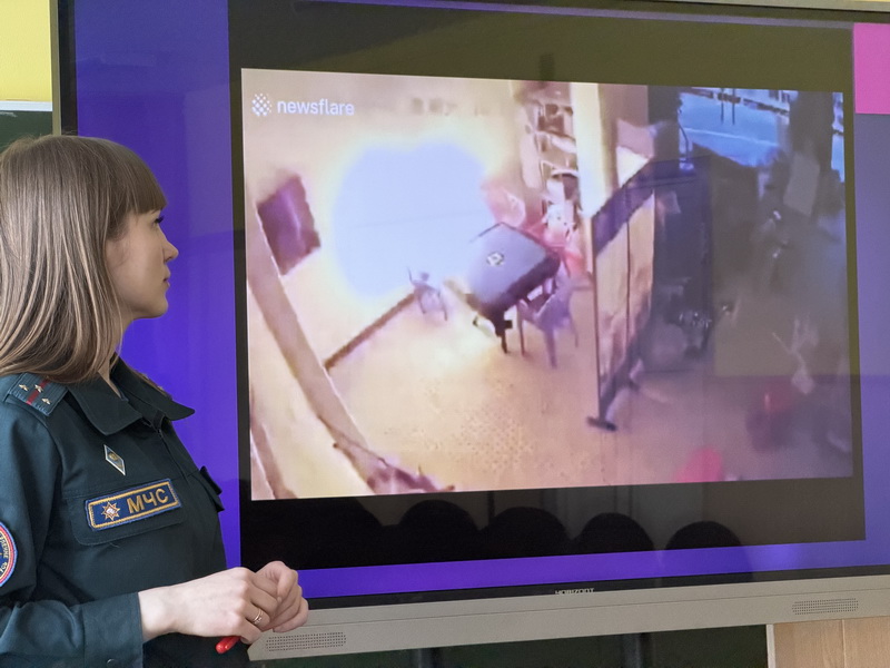 В учреждении образования, с помощью интерактивной игры «Формула безопасности» учащиеся вспомнили об опасностях, которые есть в каждом домовладении. Ребята рассказывали свои действия в случае возникновения пожара, а также, что необходимо говорить по телефону во время вызова спасателей при возникновении чрезвычайной ситуации. Также присутствующие узнали основные правила пользования электроприборами, которые помогут избежать опасных ситуаций.