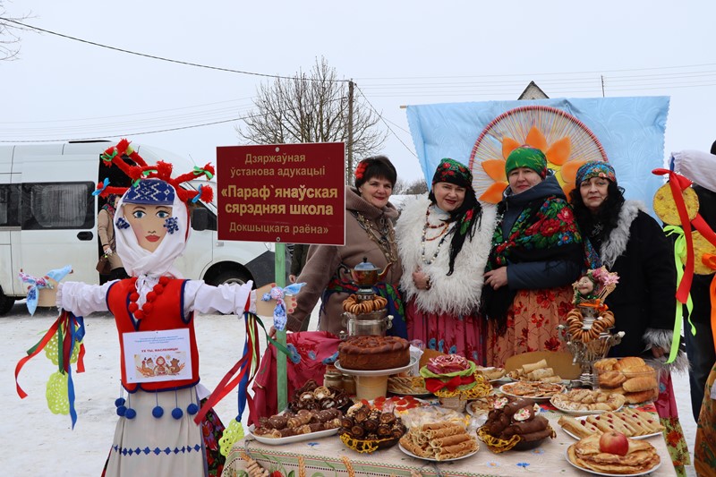 Падсілкаваўшыся, адны ішлі танцаваць пад вясёлыя найгрышы народнага ансамбля народнай песні “Раніца” ці песні ў выкананні любімых вакальных калектываў “Землякі” і “Кружева”. Другія правяралі свае фізічныя здольнасці на спартыўных пляцоўках ФСК “Ураджай” і Докшыцкай ДЮСШ. Творчую бяспройгрышную латарэю прапаноўвалі актывісты раённай арганізацыі БРСМ. Дзеці з задавальненнем выконвалі заданні ў школе бяспекі ад РАНС ці забаўляліся на гульнёвых дворыках Докшыцкай дзіцячай бібліятэкі і Парплішчанскага СДК. Сувеніры на памяць прапаноўвалі майстры раённага Дома рамёстваў. Сагрэцца гарачай гарбатай ці кавай таксама з блінамі і не толькі, можна было ў гандлёвым павільёне філіяла аблспажыўтаварыства.