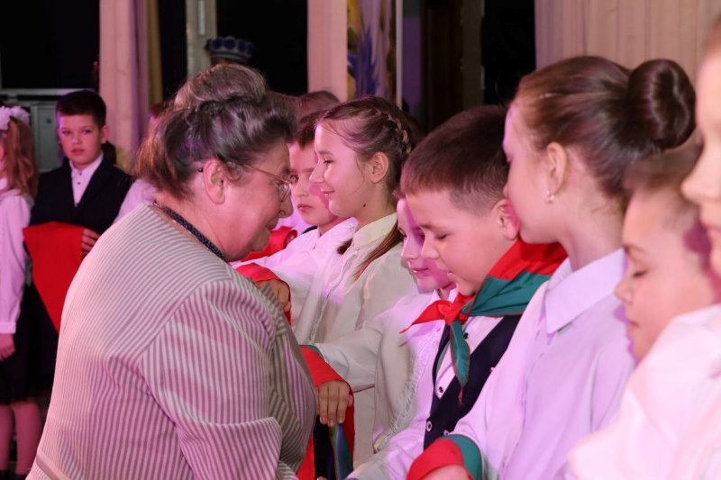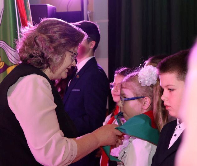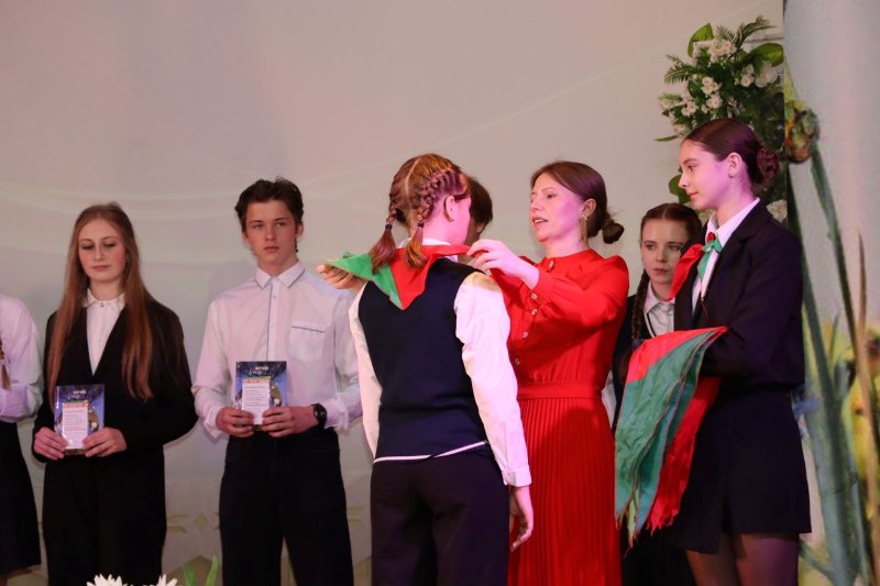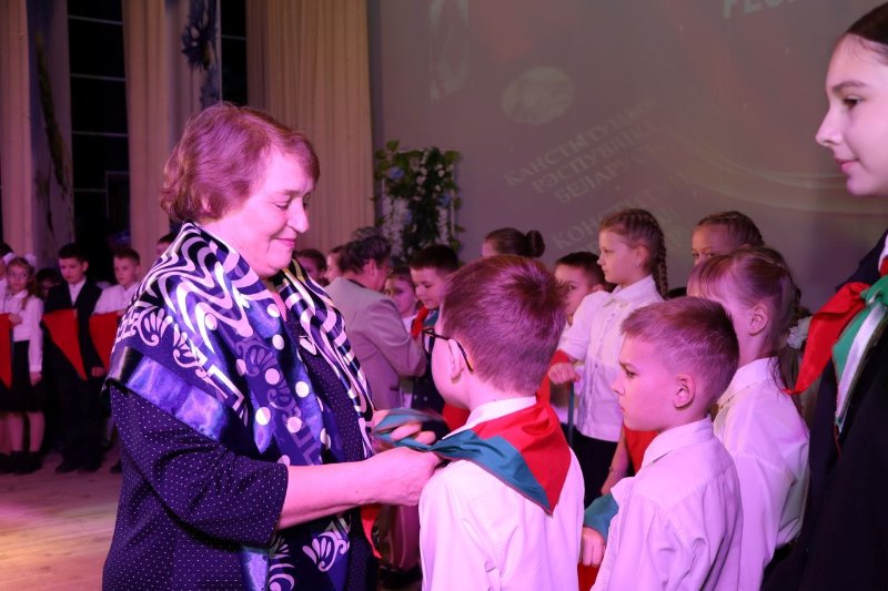 Право повязать пионерские галстуки предоставлено почетным гостям: председателю районного Совета депутатов Валентине Рандаревич и ветеранам пионерского движения, почетным пионерам Докшицкого района Людмиле Коляде и Елене Сорокиной.