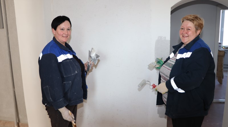 Зараз жанчыны завяршаюць аддзелку кабінетаў на другім паверсе адміністрацыйнага будынка філіяла “Докшыцыводаканал”. Пасля адправяцца на іншы аб’ект – у цэнтральную раённую бальніцу, дзе ідзе рамонт тэрапеўтычнага аддзялення.