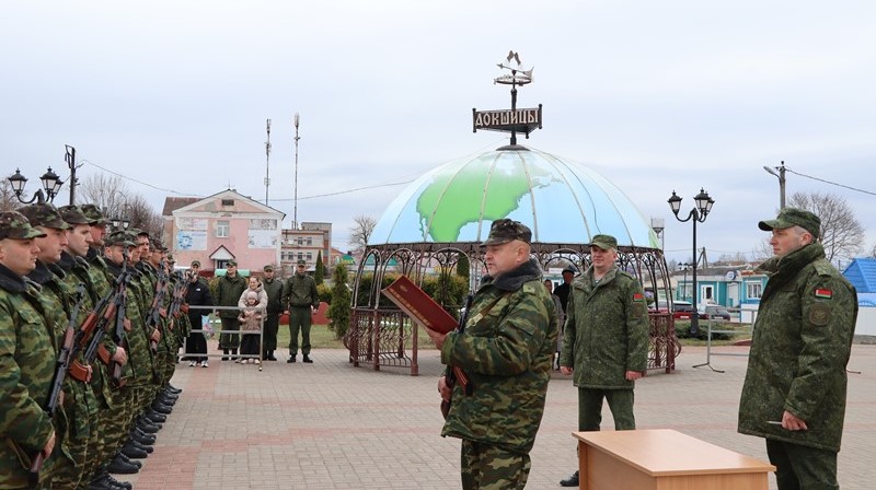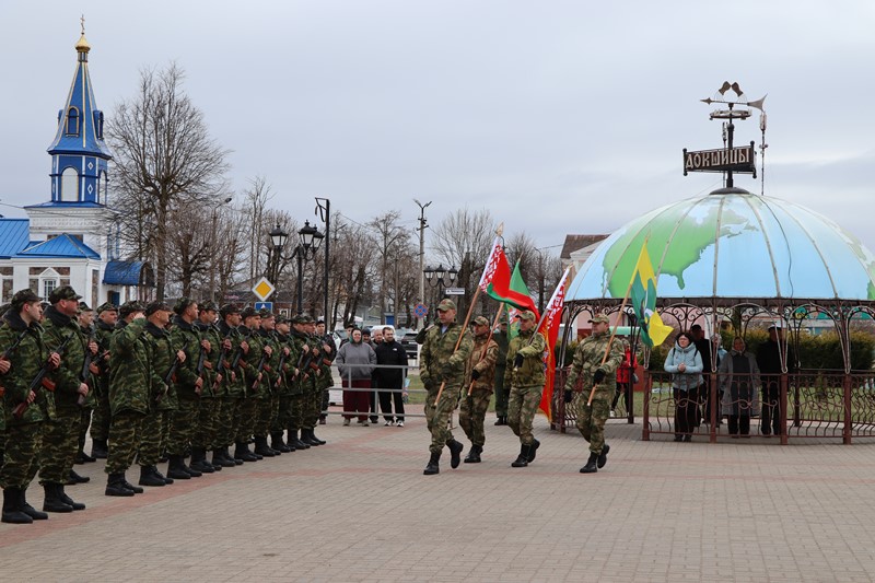 Асабовы склад вайскоўцаў тэрытарыяльных войскаў віталі старшыня райвыканкама Сяргей Абірала, ваенны камісар Віцебскай вобласці палкоўнік Сяргей Кунахавец, благачынны Докшыцкай царкоўнай акругі протаіерэй Леанід Страха.