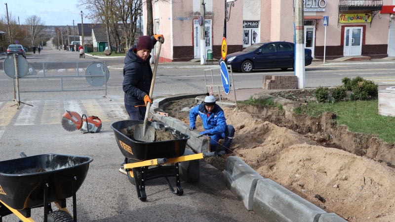 – Яго будуем на ўчастку ад вуліцы Ленінскай да перакрыжавання з вуліцай Маякоўскага, – паведаміў Сяргей Каляга. – Падрыхтоўчыя работы – разметку, выманне грунту і насып пяску для так званай “падушкі” – ужо завяршылі. Зараз устанаўліваем бардзюры, пасля чаго прыступім да ўкладкі непасрэдна самой пліткі.
