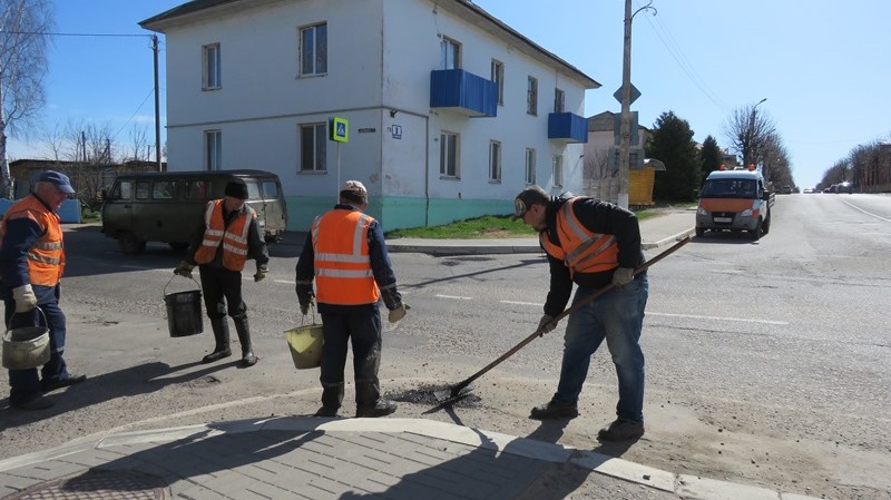 Работники Докшицкого ДРСУ-180 приступили к ямочному ремонту