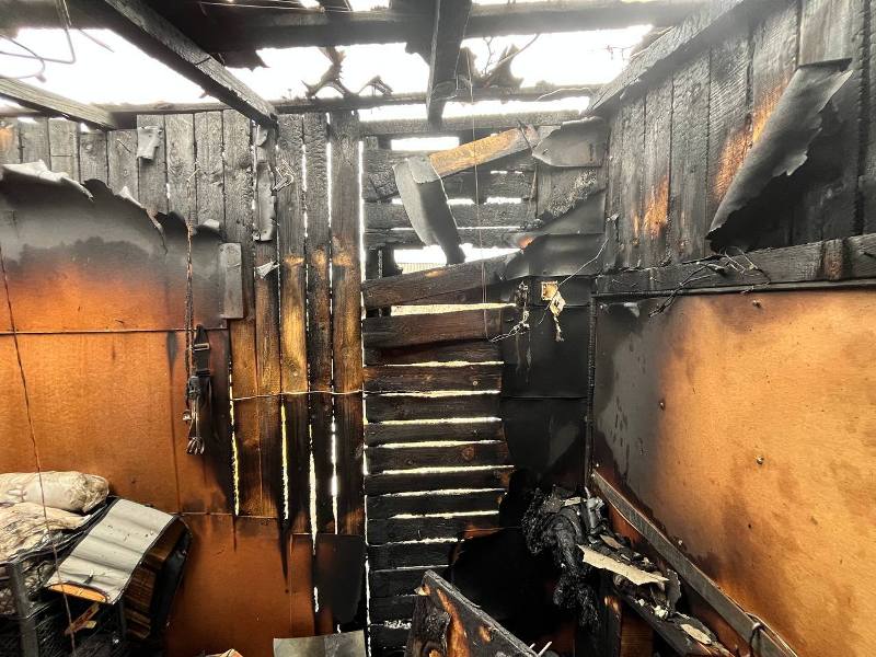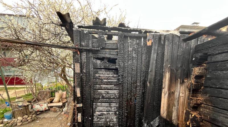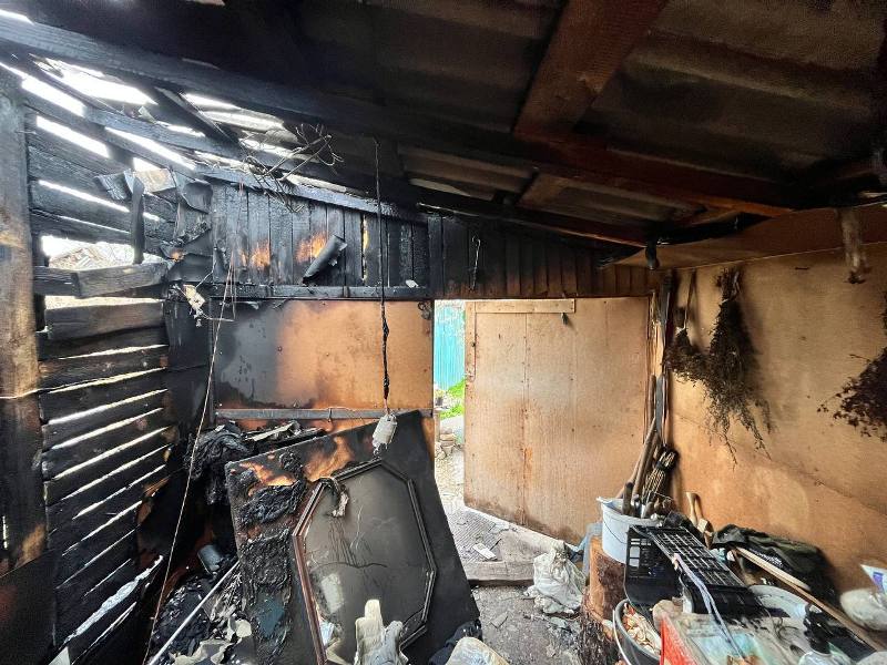 В результате пожара в хозяйственных постройках повреждены кровля, потолочные перекрытия, стены, имущество.