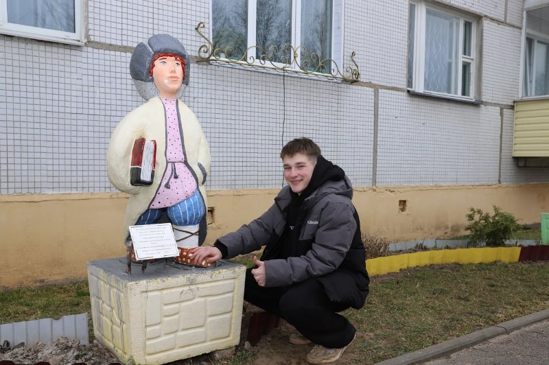 – Яшчэ адзін аб’ект на прыдамавой тэрыторыі быў устаноўлены за грашовы сертыфікат, які жыхары нашага дома атрымалі за перамогу ў штогадовым раённым аглядзе-конкурсе па добраўпарадкаванні, – гаворыць адна з актывістак па навядзенні прыгажосці каля шматпавярховіка Тамара Новік. – Не ўпершыню па дапамогу звяртаемся да Уладзіміра Шуткіна. Ён аўтар шматлікіх інсталяцый як у нашым двары, так і ў горадзе. Паколькі дом наш знаходзіцца насупраць установы адукацыі, фігура хлопчыка, які ідзе з кніжкамі ў школу, лічу, прыйшлася да месца.
